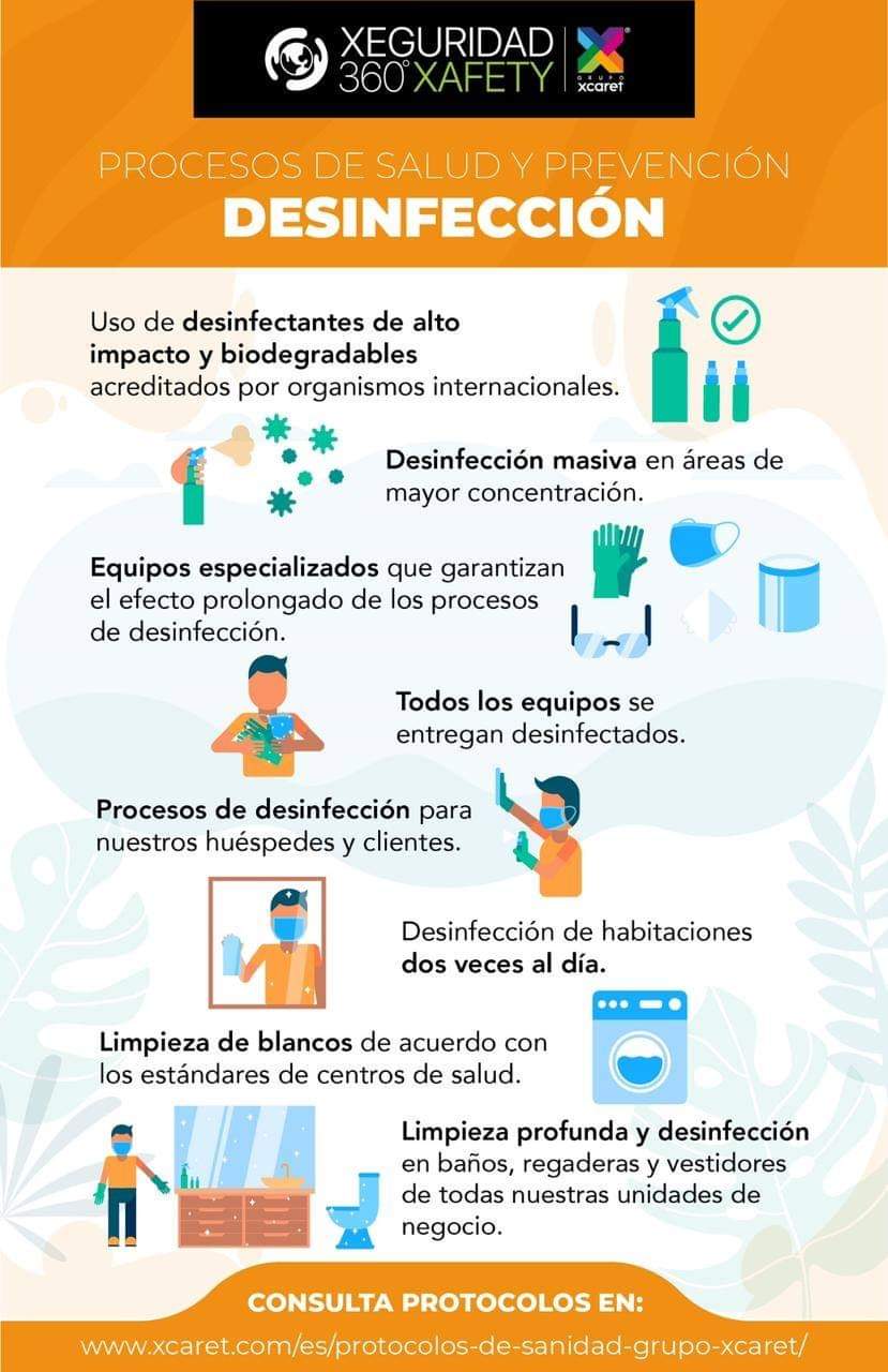 “Se divide en 4 pilares: uno que atiende el problema de desinfección, otro que atiende al distanciamiento físico, otro que tiene medidas de control sobre todo enfocado en personas, y un cuarto que atiende puntualmente el tema de alimentos y bebidas”, explicó Iliana Rodríguez, directora corporativa de sostenibilidad y relaciones institucionales de Grupo Xcaret.